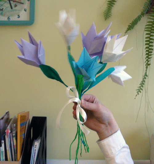 Модульное оригами. Букет подснежников (коллективная работа) .